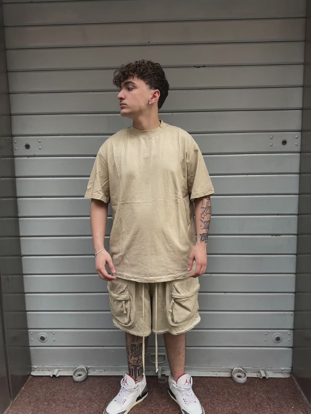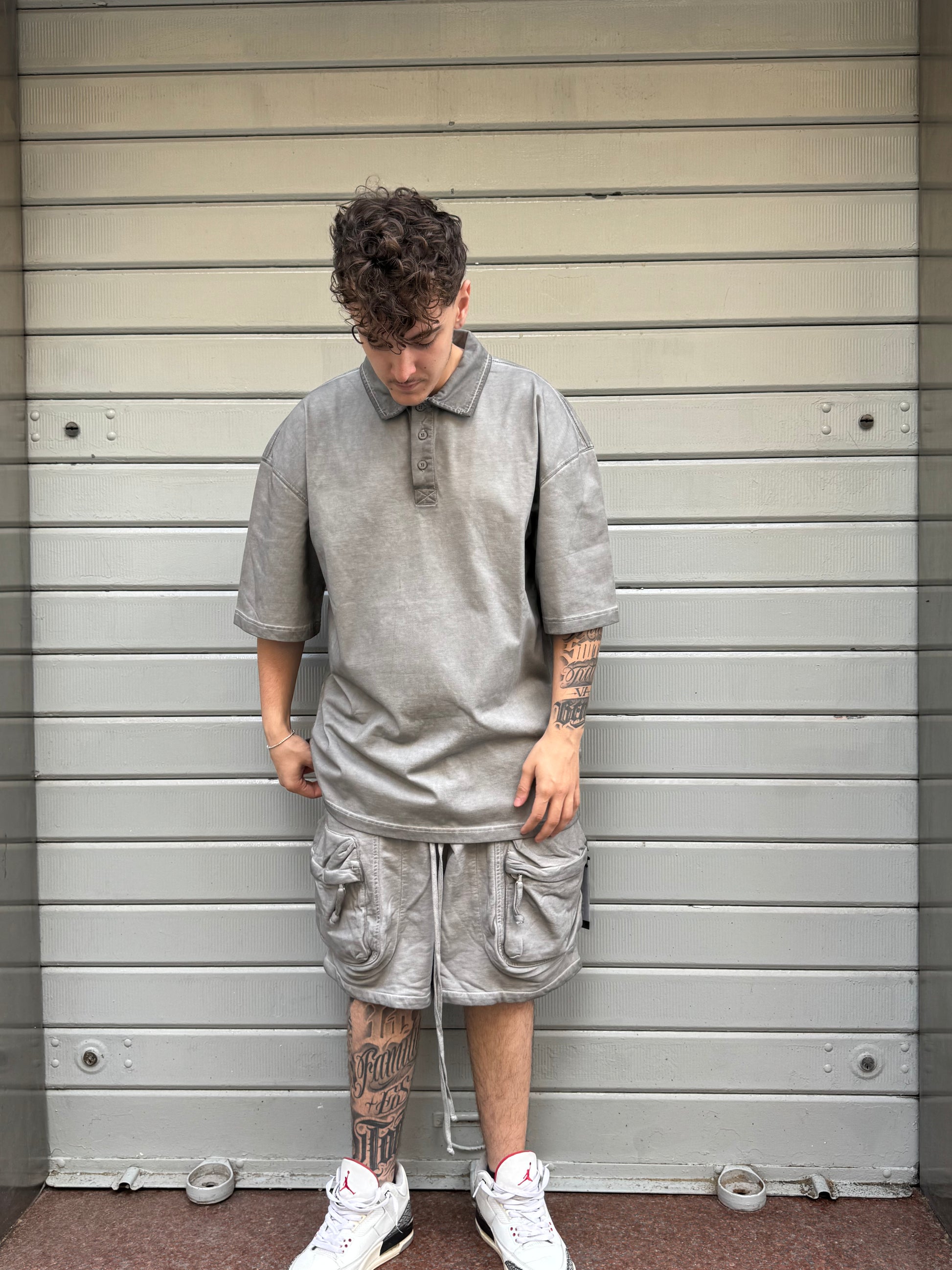 Bermuda in felpa slavato con tasca frontale